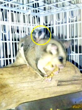 フクロモモンガのモンキチ(♂)が餌を食べている写真なのですが・・・・・。