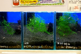 前のブログで紹介した、オリジナル水槽で構成されたエビ水槽です。
