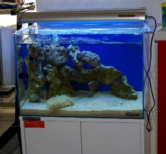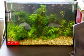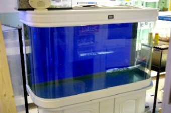 全体図が撮れなかったのでわかりにくいですが、オーバーフローになっていて、上に同じサイズの水槽が3本と下に60cmの水槽が1本あります。