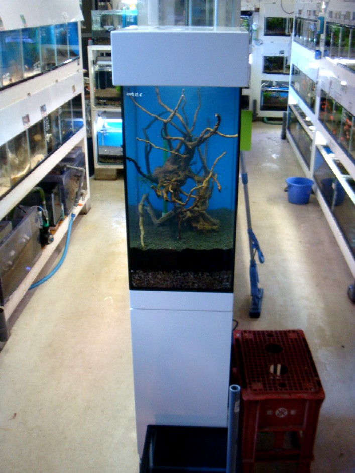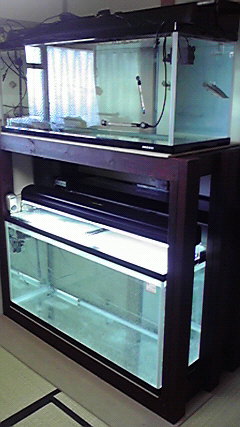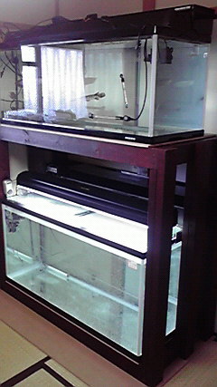 無事に設置を終えてきました。 非常に美しく、そしてカッコイイものとなりました。 では、ご覧下さい・・・・。 ←下段に後日、アジアアロワナが投入されます。 楽しみですね~♪ 水槽設置をご検討中のお客様、お声をおかけ下さい!!!